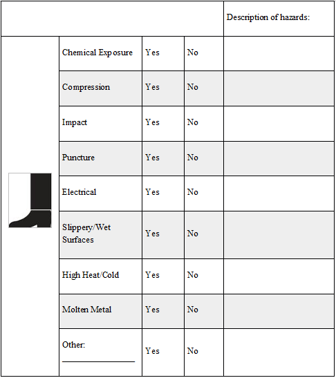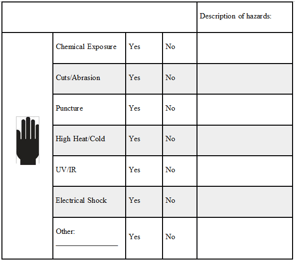 Based on the hazard assessment for ______________________________ (Job Classification), the following PPE is required: