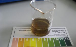 Acids typically will have a sour taste and a pH of less than 7. There are two types of acids: mineral (inorganic) acids such as sulfuric, hydrochloric or nitric and carboxylic (organic) acids such as formic or acetic. To neutralize acids, a weak base is used.